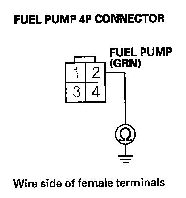 55. Check for continuity between fuel pump 4P connector terminal No. 2 and body ground.