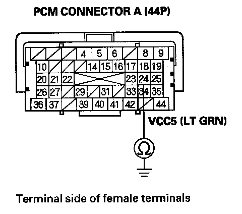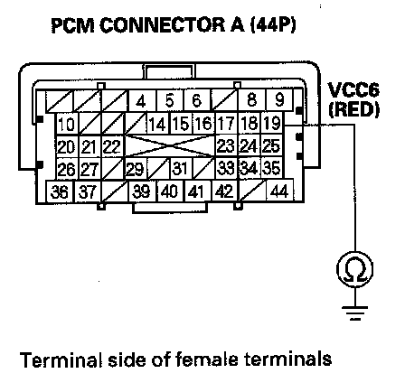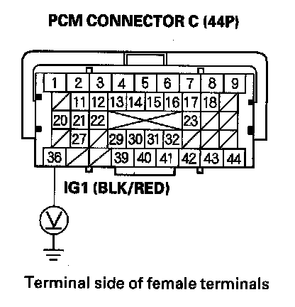 61. Measure voltage between PCM connector terminal C36 and body ground.