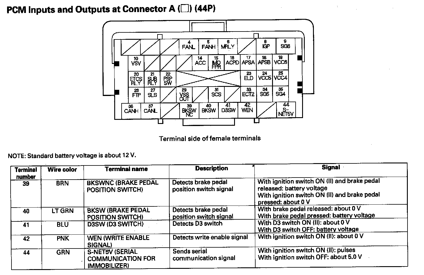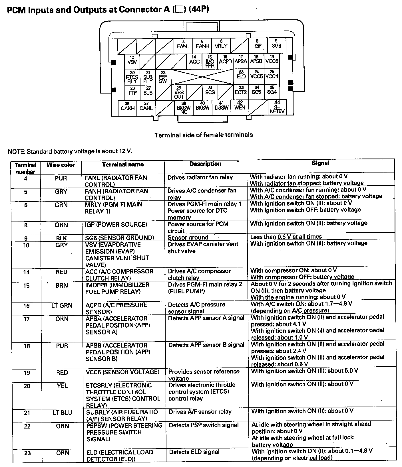 PCM Inputs And Outputs At Connector A (44P) Part 3: