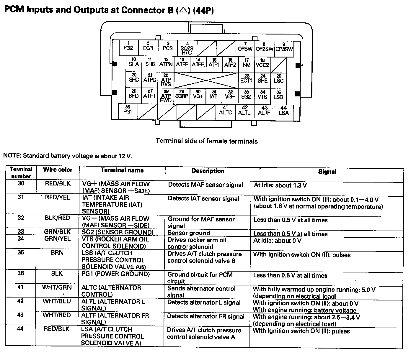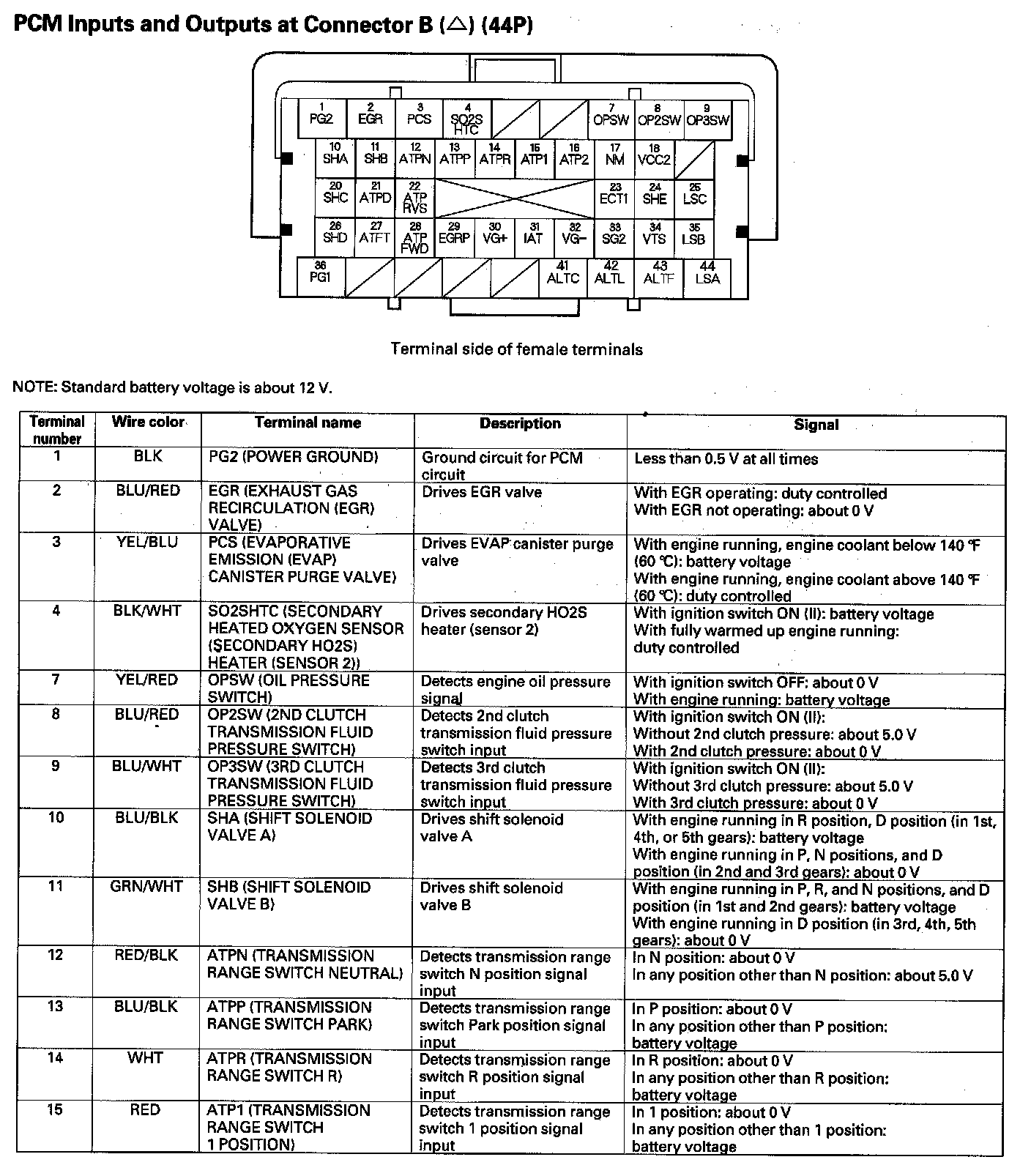 PCM Inputs And Outputs At Connector B (44P) Part 1: