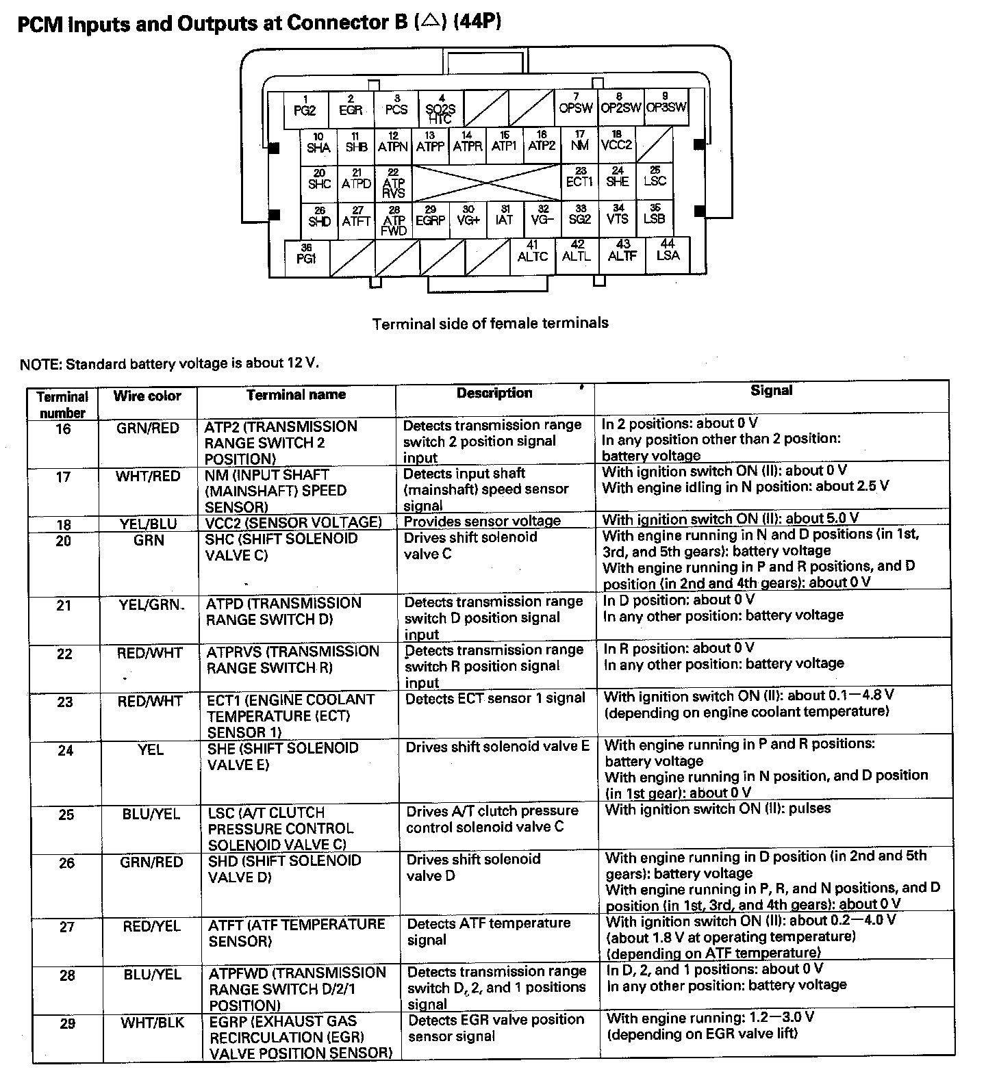PCM Inputs And Outputs At Connector B (44P) Part 2: