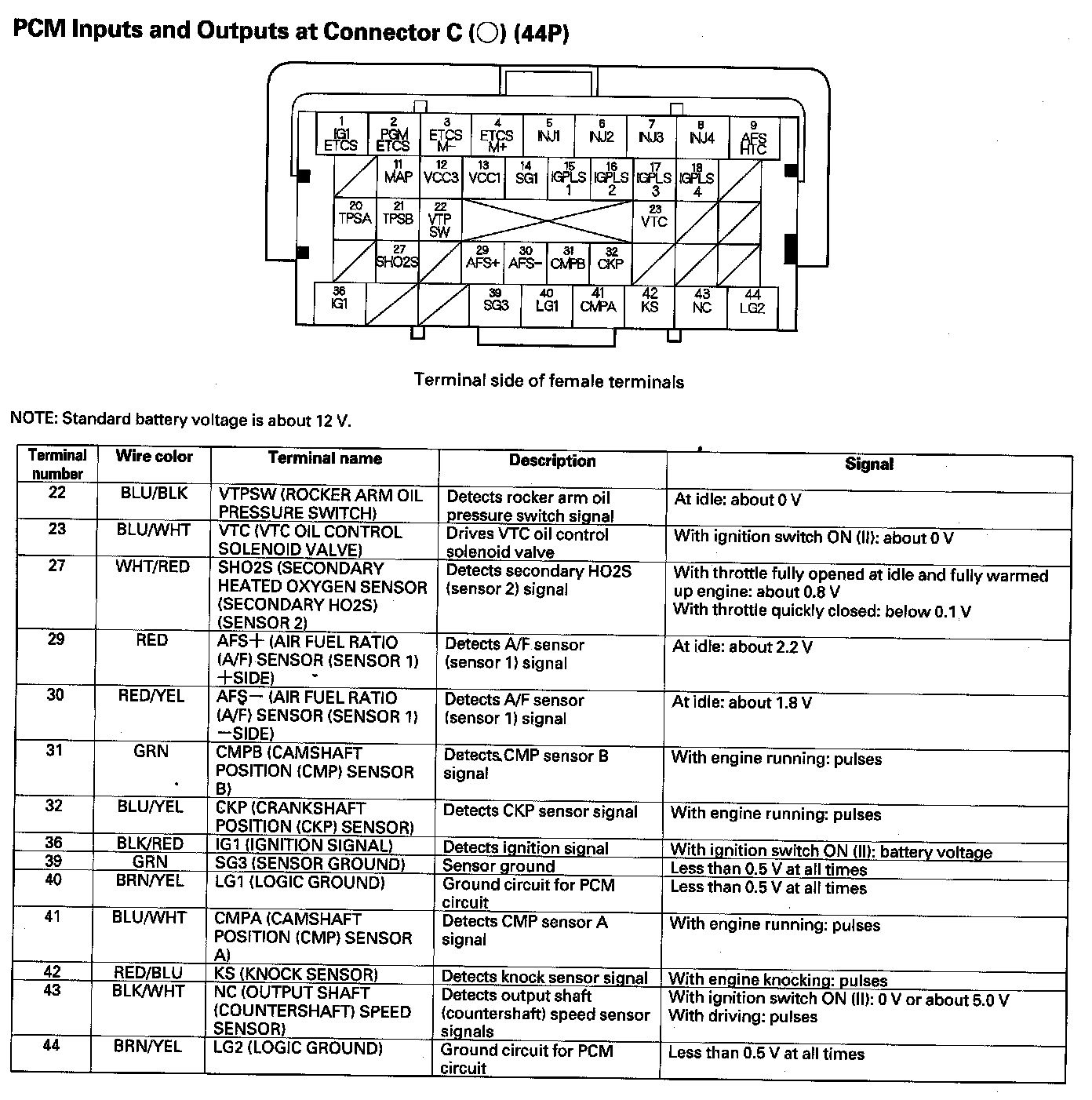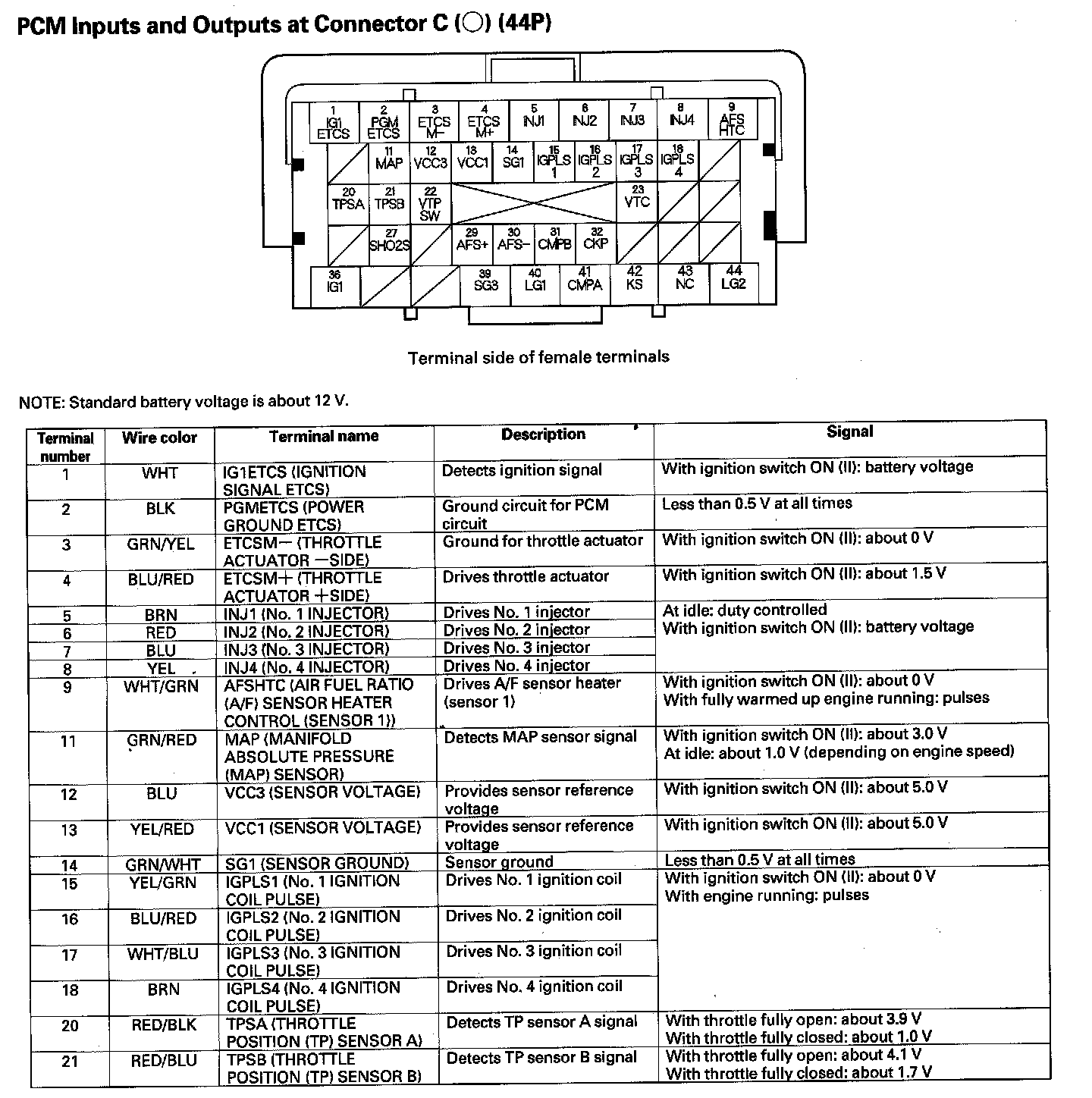 PCM Inputs And Outputs At Connector C (44P) Part 1: