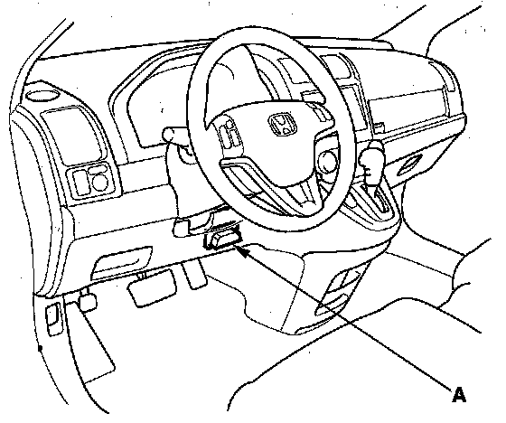 2. Connect the HDS to the data link connector (DLC) (A) located under the driver's side of the dashboard.