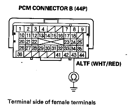 8. Check for continuity between body ground and PCM connector terminal B43.