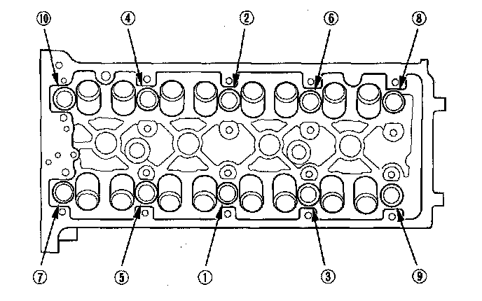 Tighten the cylinder head bolts in sequence 39 N-m (4.0 kgf-m, 29 lbf-ft).