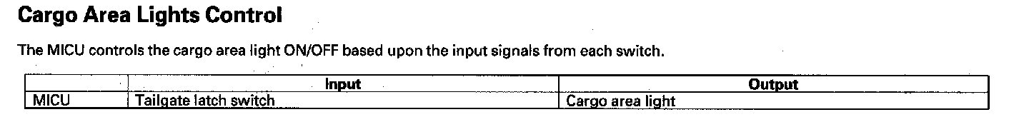 Cargo Area Lights Control