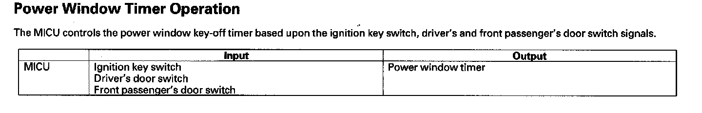 Power Window Timer Operation