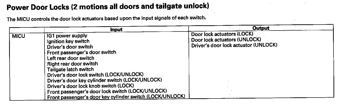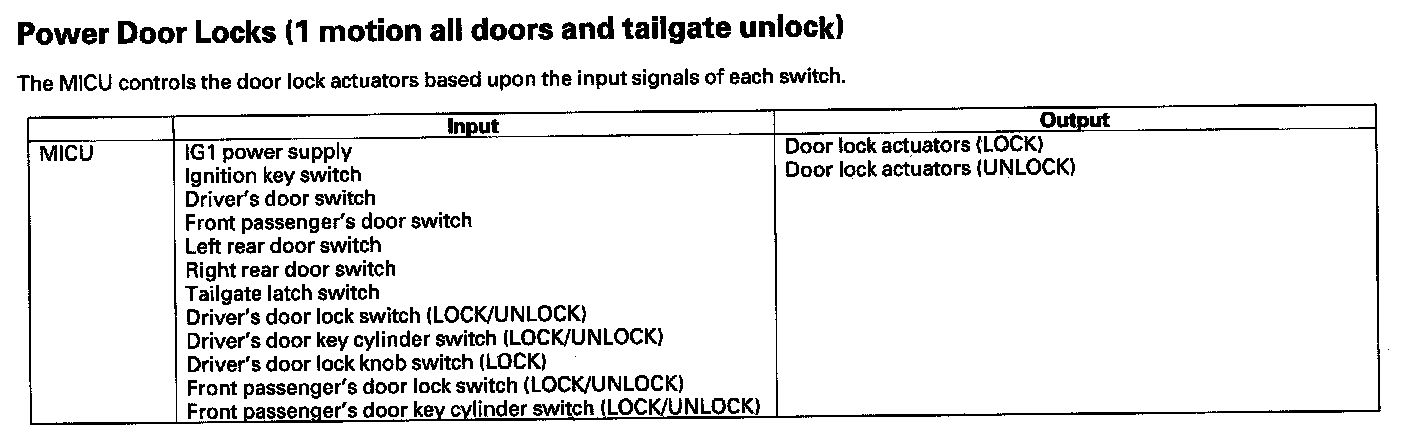 Power Door Locks (2 Motions All Doors And Tailgate Unlock)