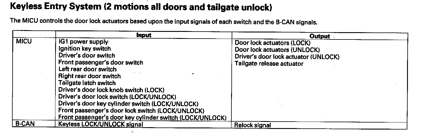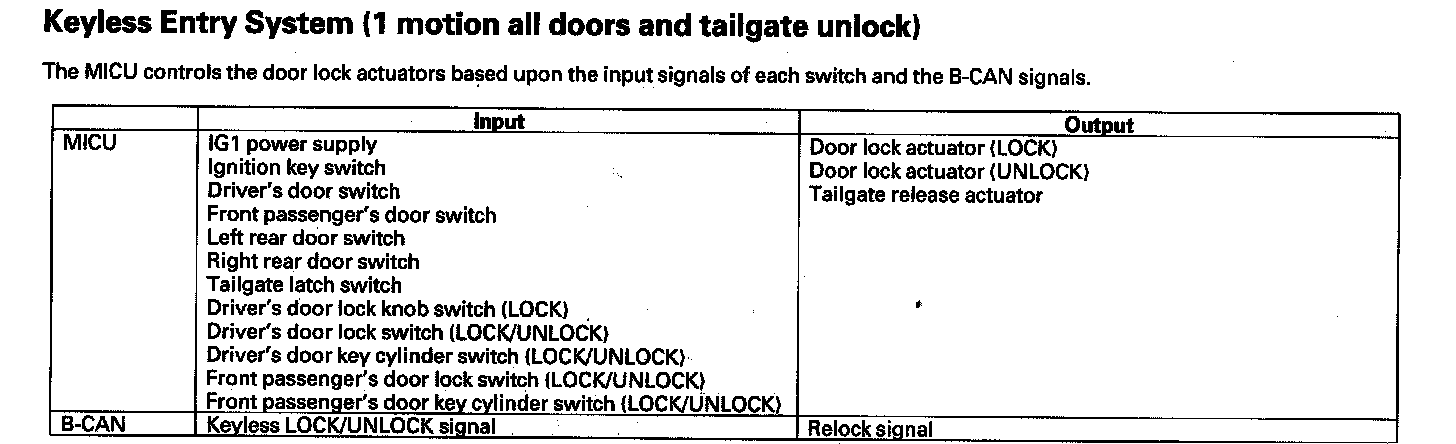 Keyless Entry System (1 Motion All Doors And Tailgate Unlock)