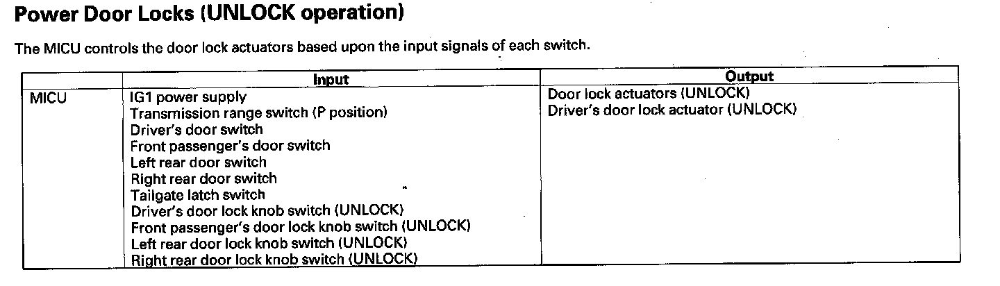 Power Door Locks (UNLOCK Operation)
