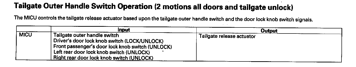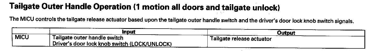 Tailgate Outer Handle Operation (1 Motion All Doors And Tailgate Unlock)