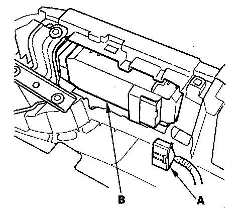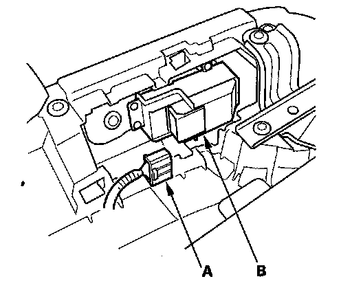 2. Disconnect the 8P connector (A) from the passenger's power window switch (B).