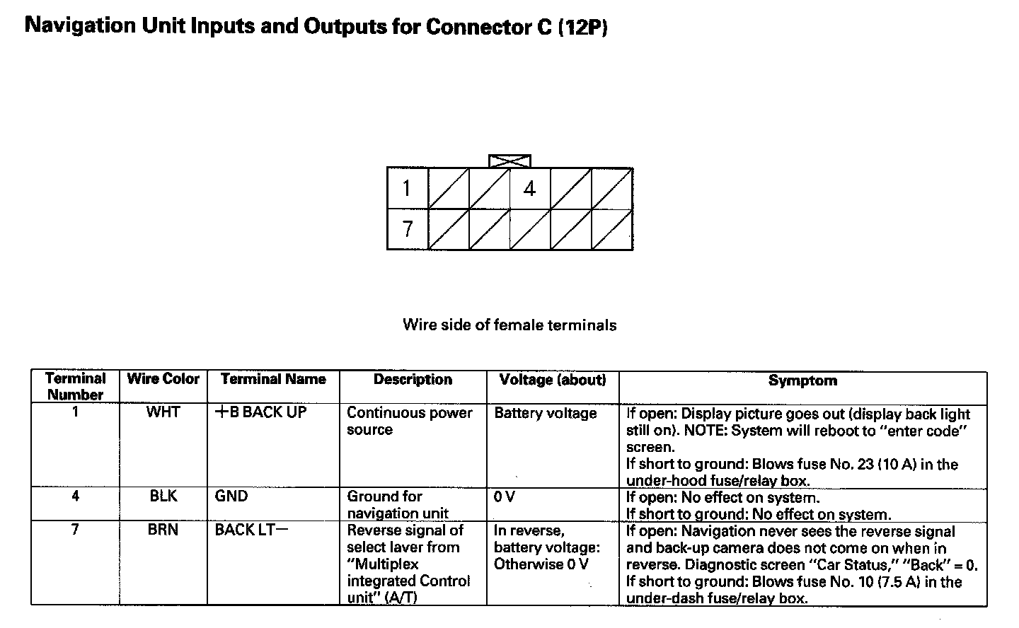 Navigation Unit Inputs And Outputs For Connector C (12P):