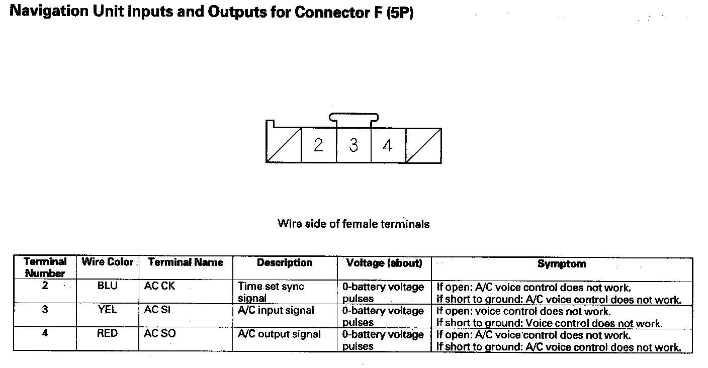 Navigation Unit Inputs And Outputs For Connector F (5P):