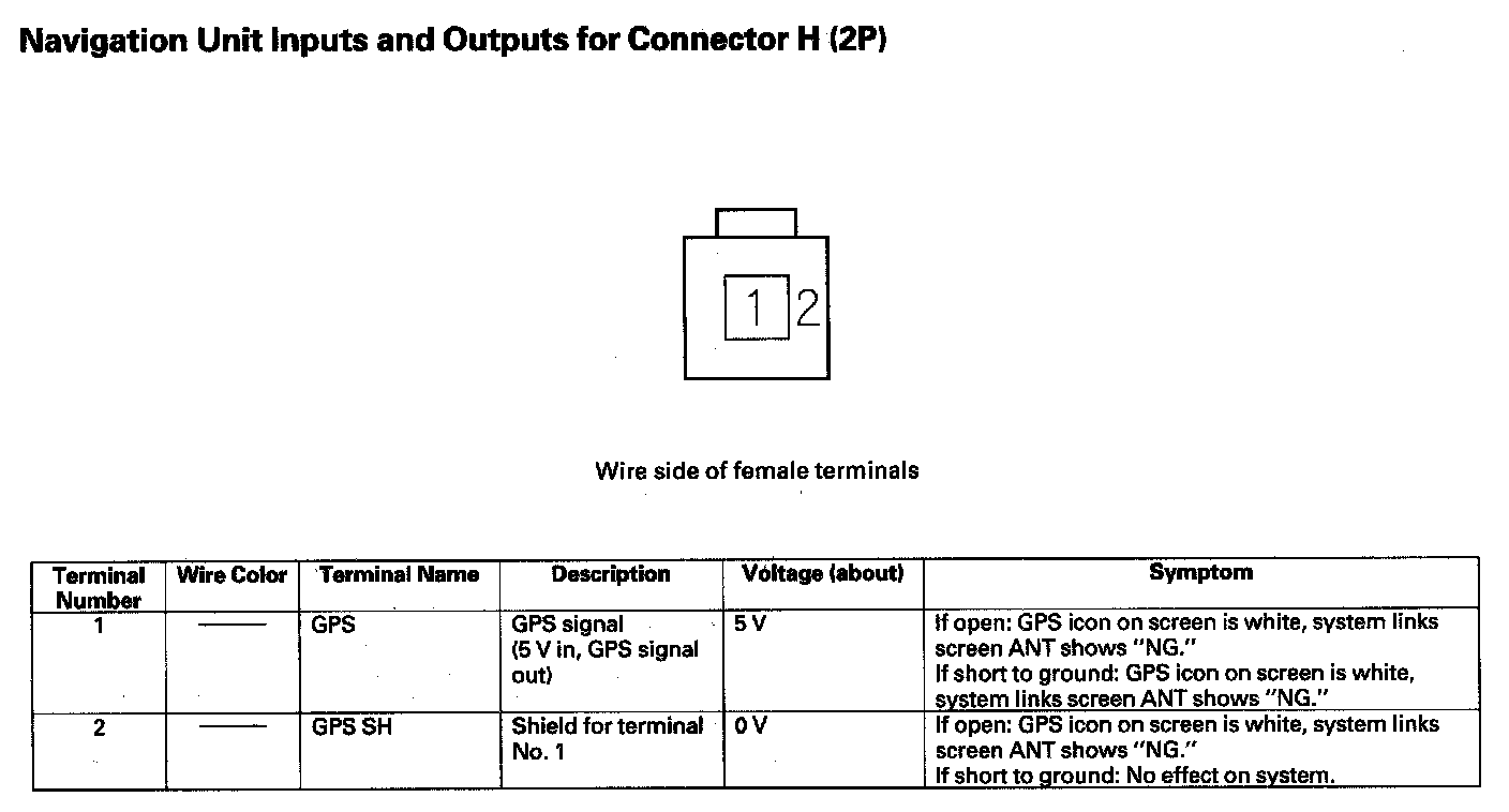 Navigation Unit Inputs And Outputs For Connector H (2P):