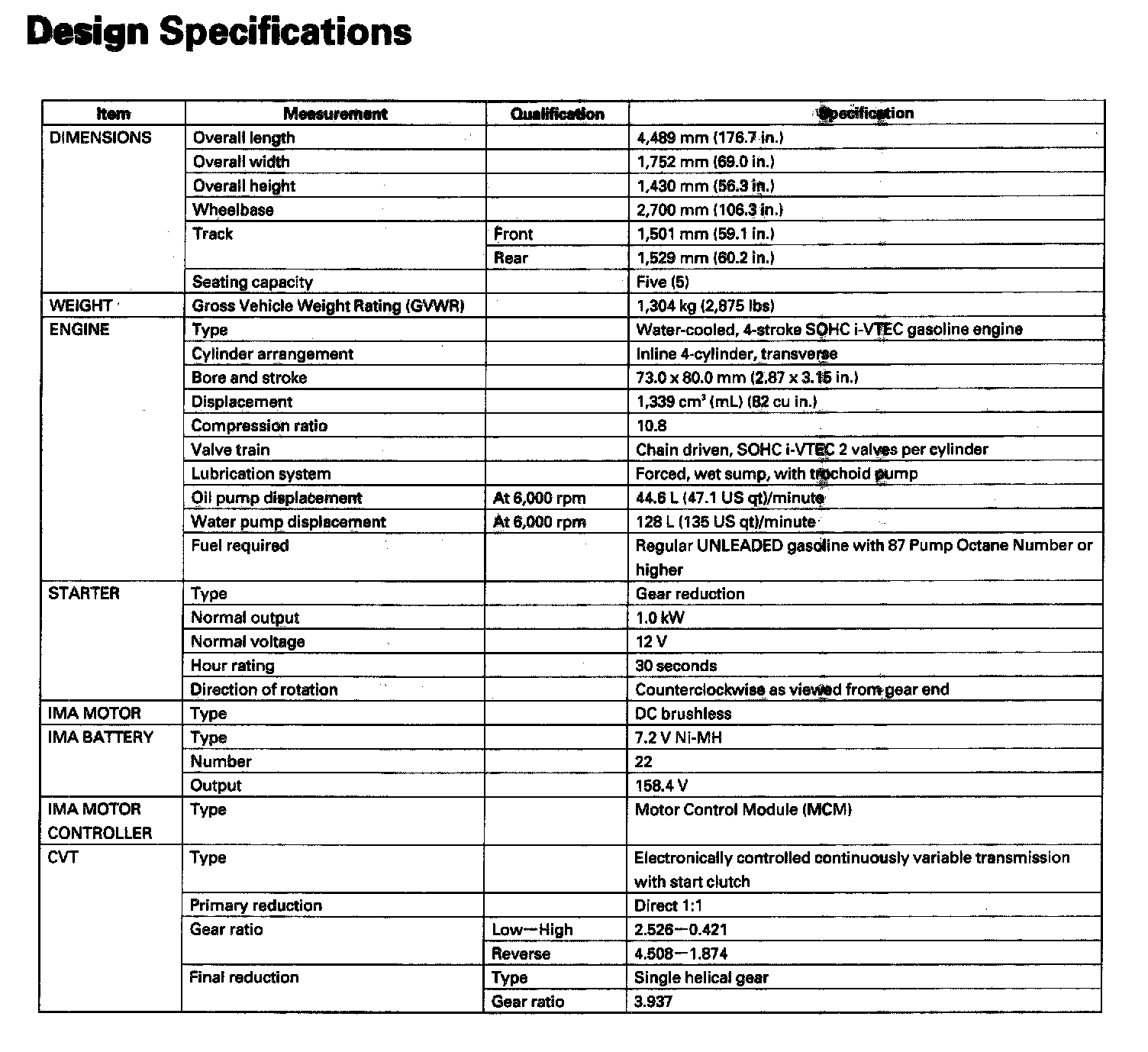 Civic L4-1.3L Hybrid