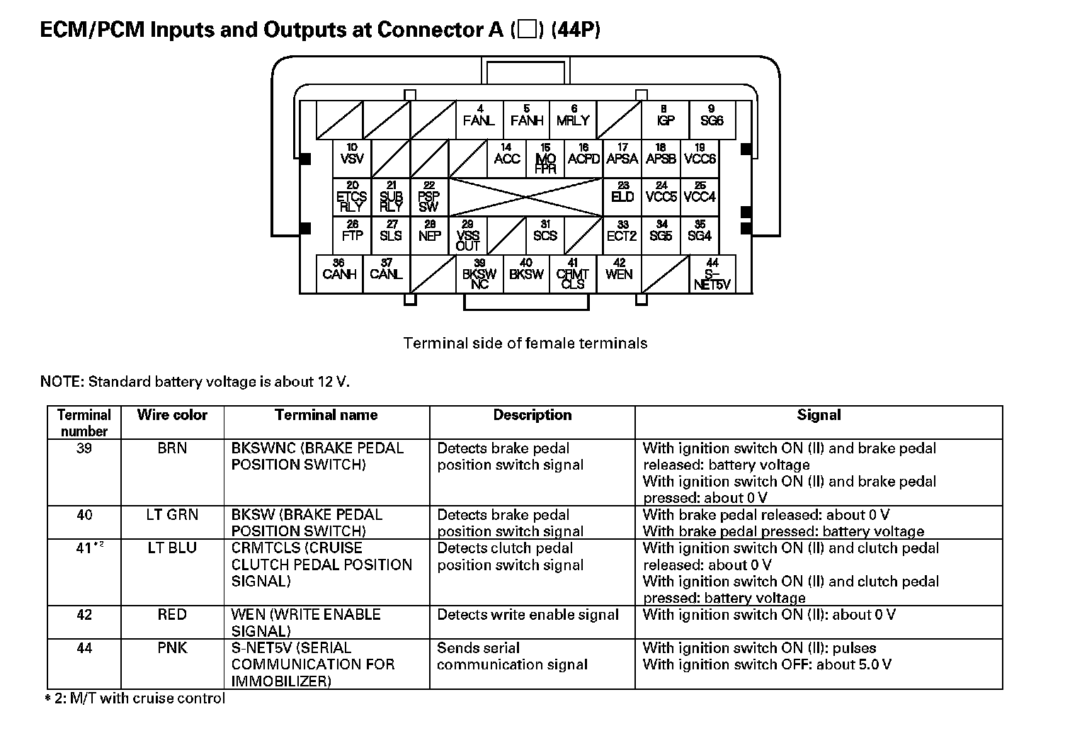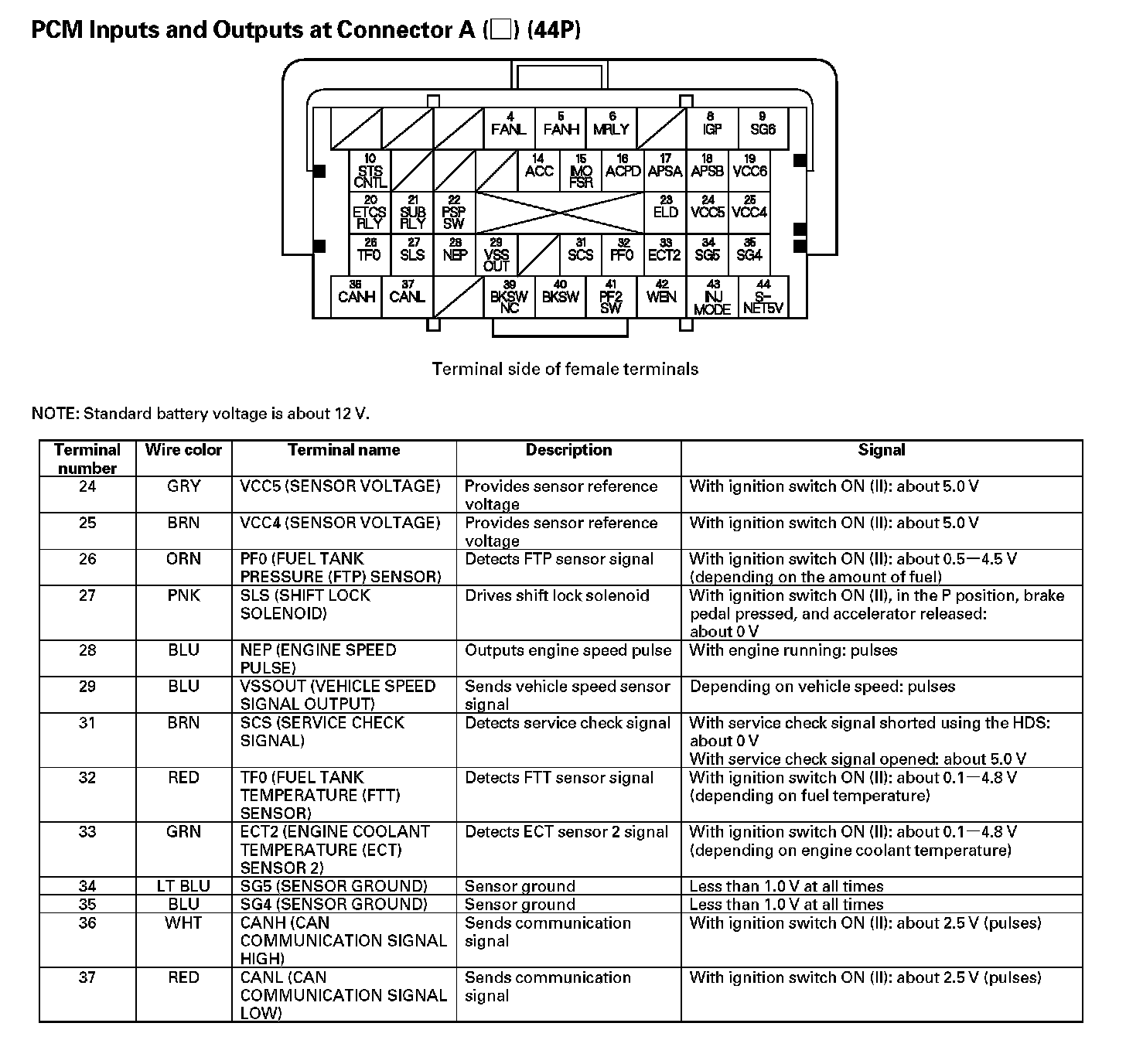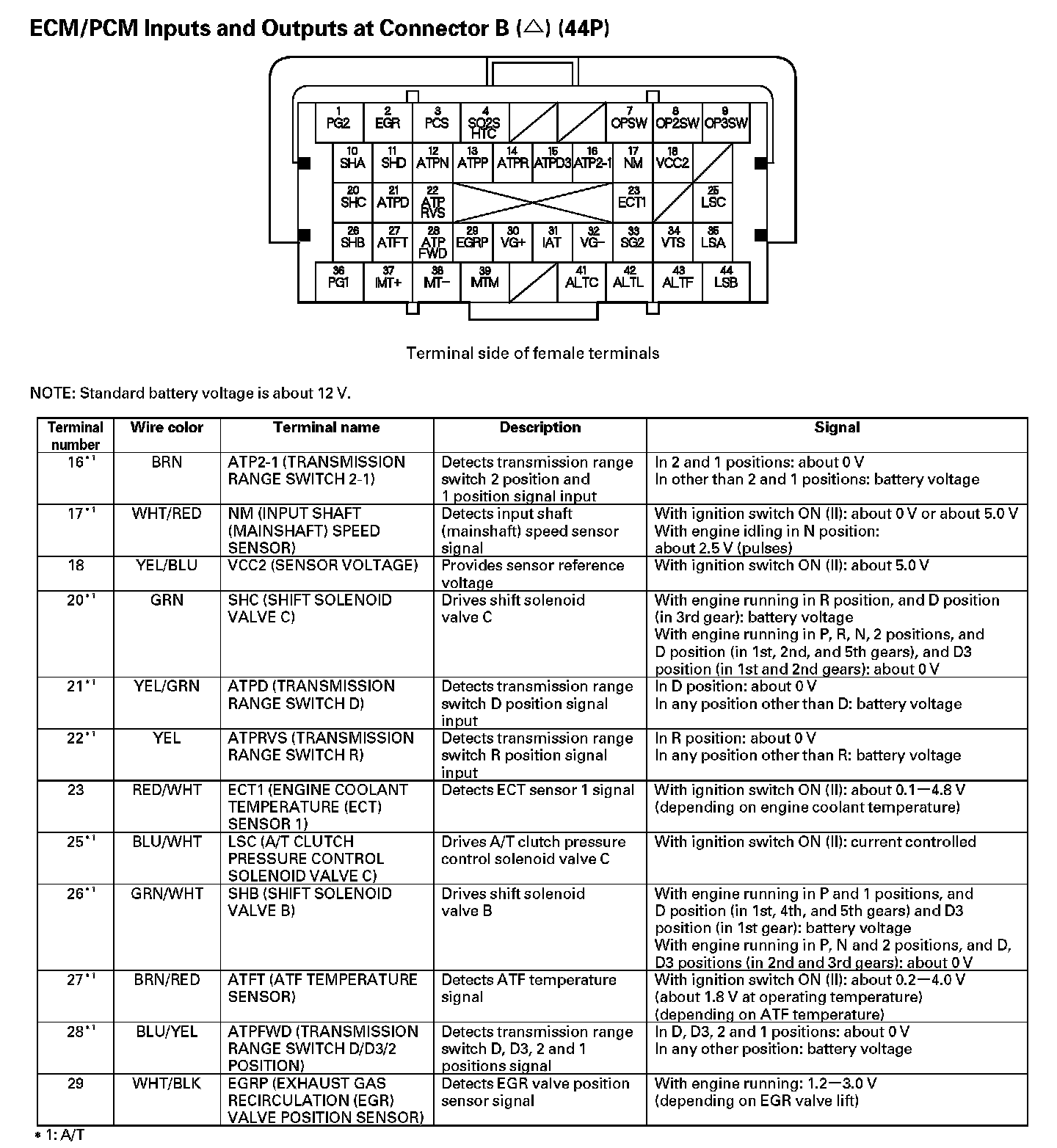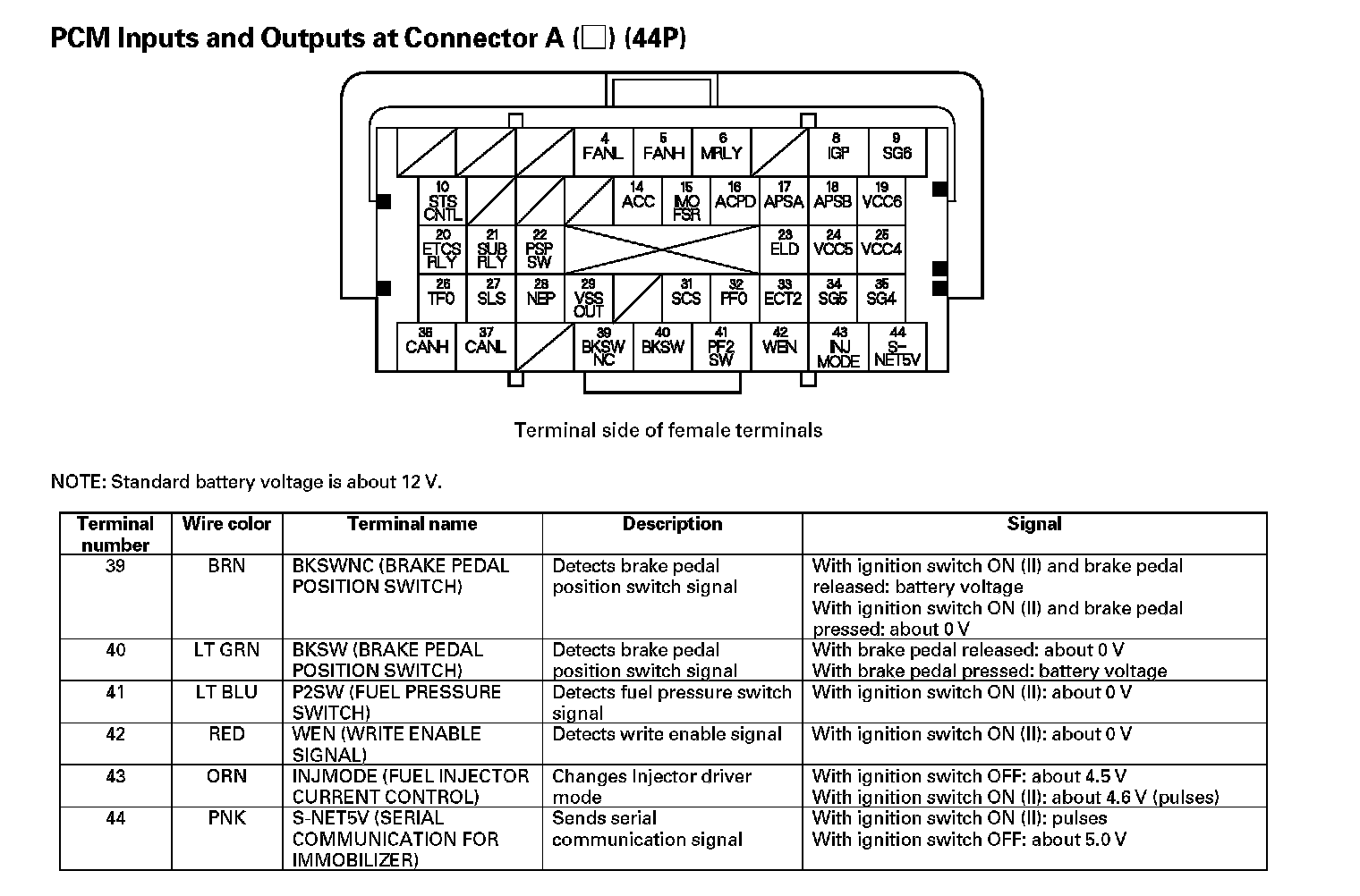 PCM Inputs And Outputs At Connector A (44P) - Part 1: