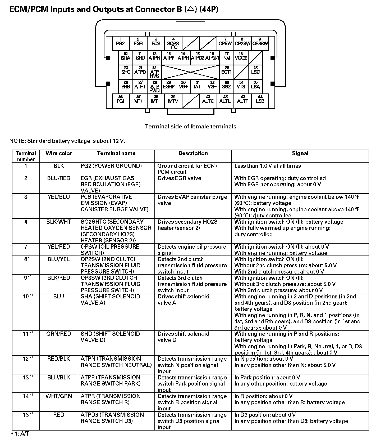 PCM Inputs And Outputs At Connector B (44P) - Part 1: