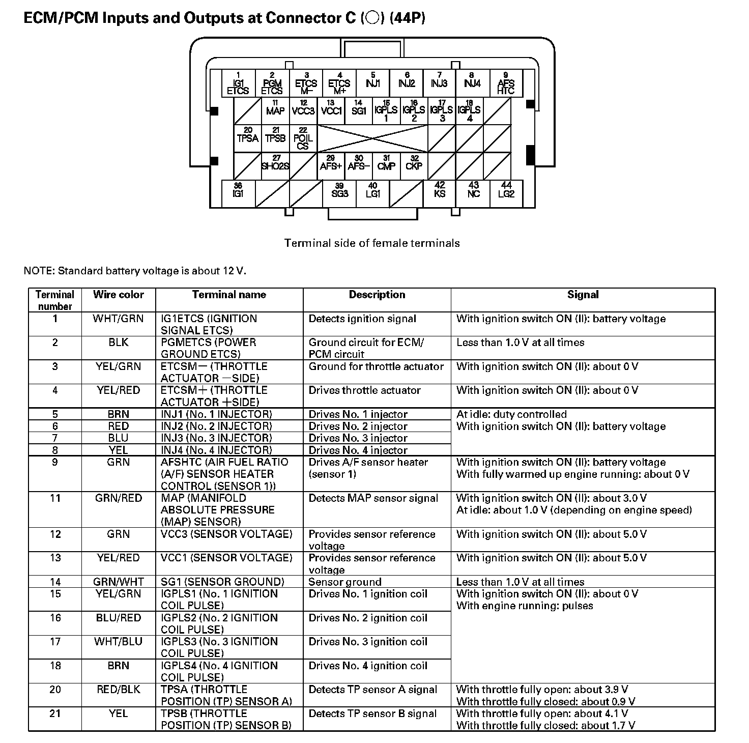 PCM Inputs And Outputs At Connector C (44P) - Part 1: