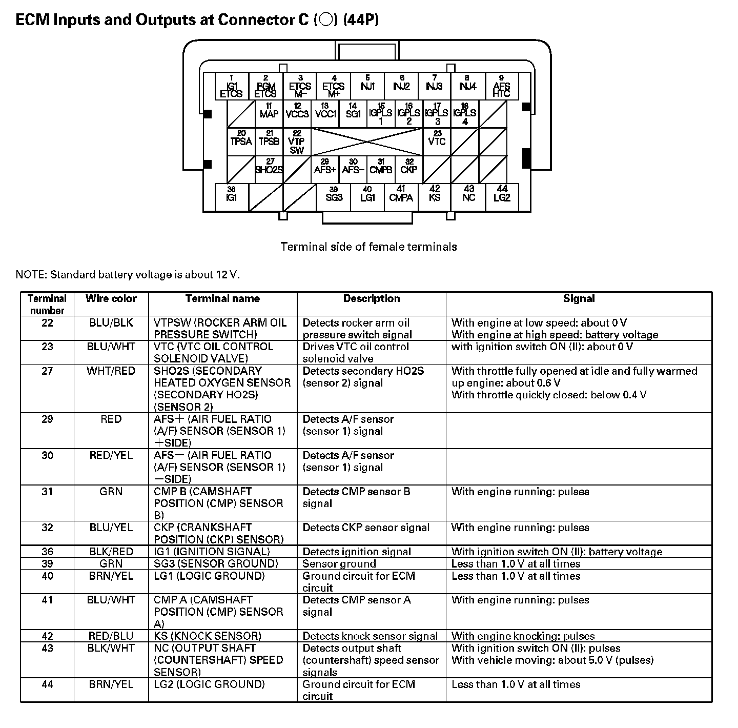 ECM Inputs And Outputs At Connector C (44P) - Part 2: