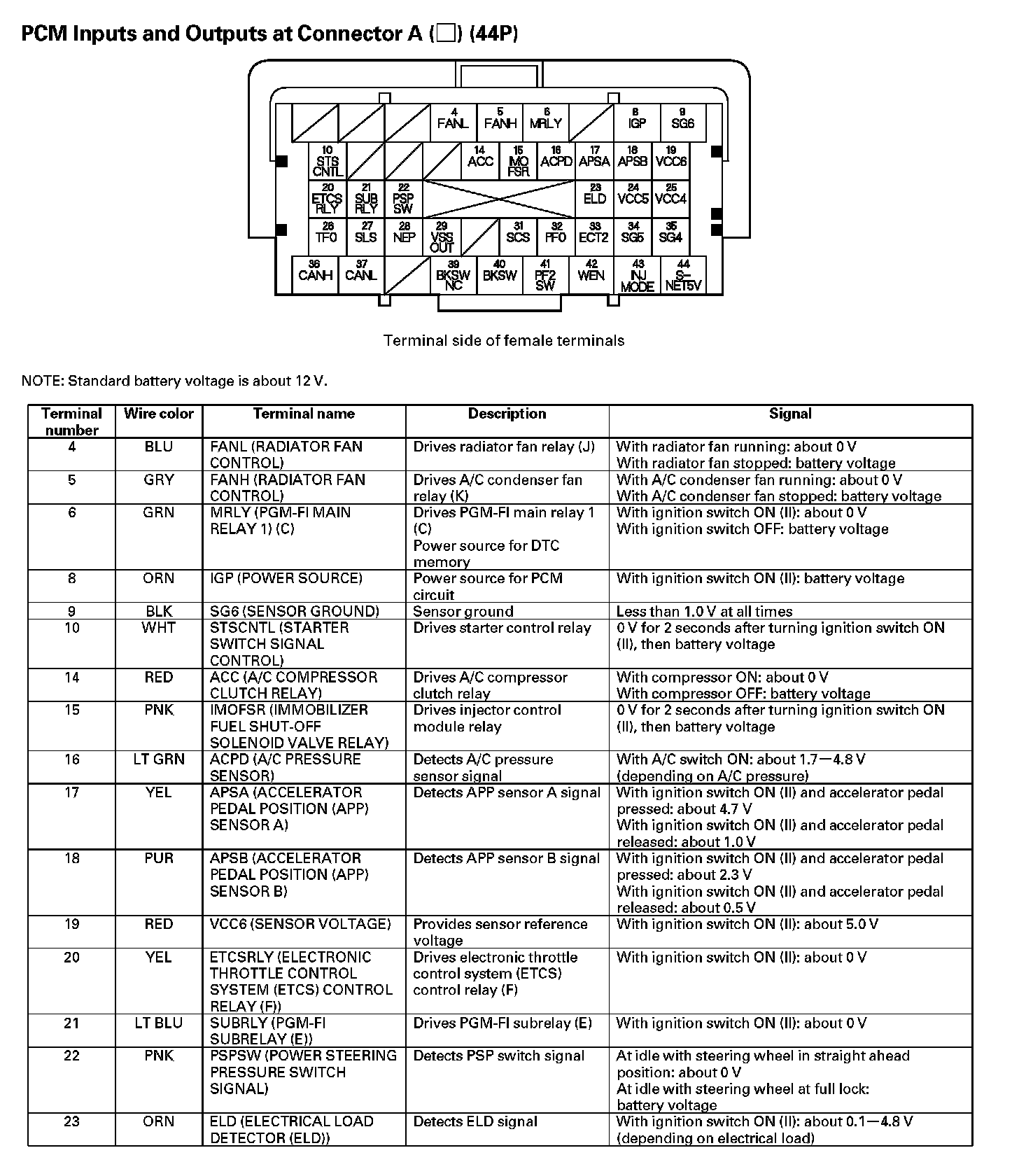 PCM Inputs And Outputs At Connector A (44P) - Part 3: