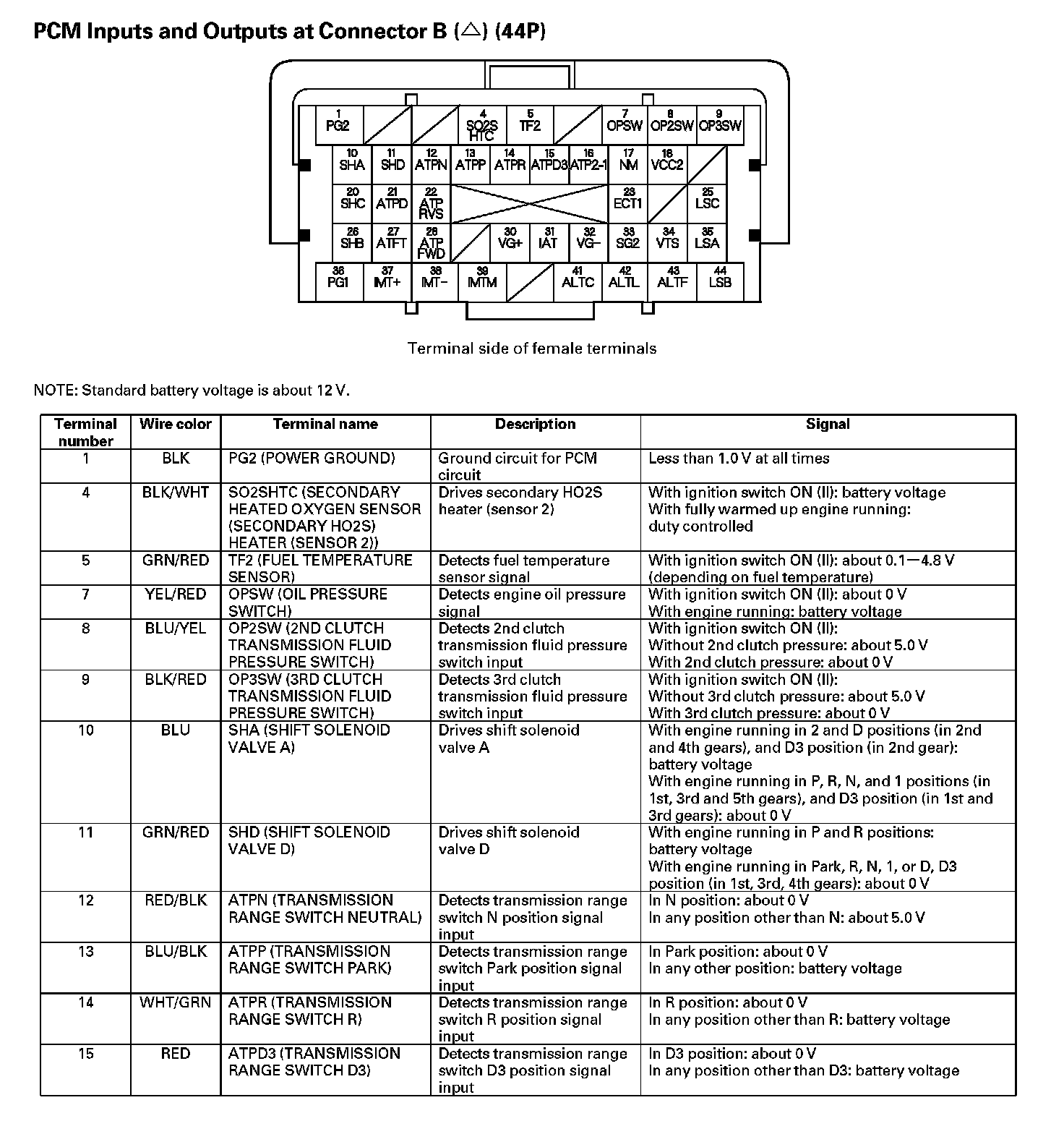 PCM Inputs And Outputs At Connector B (44P) - Part 3: