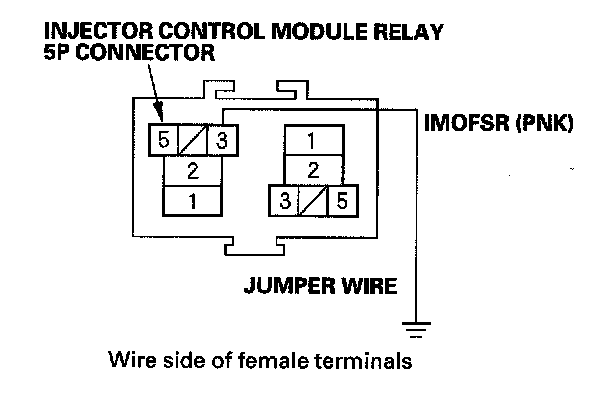 4. Connect injector control module relay 5P connector terminal No. 3 to body ground with a jumper wire.