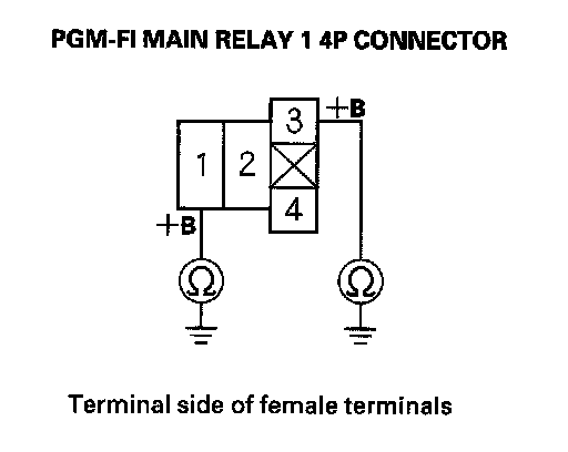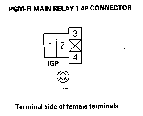 39. Check for continuity between body ground and PGM-FI main relay 1 4P connector terminals No.1 and No.3 individually.