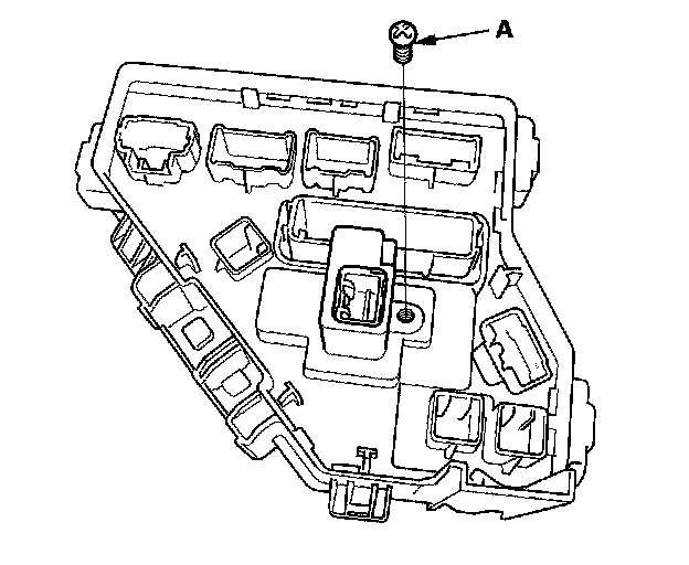 5. Turn the housing over again. Using two flat-tip screwdrivers, release the tabs (A), and pry up the fuse/relay box base (B) from the fuse/relay box housing (C).