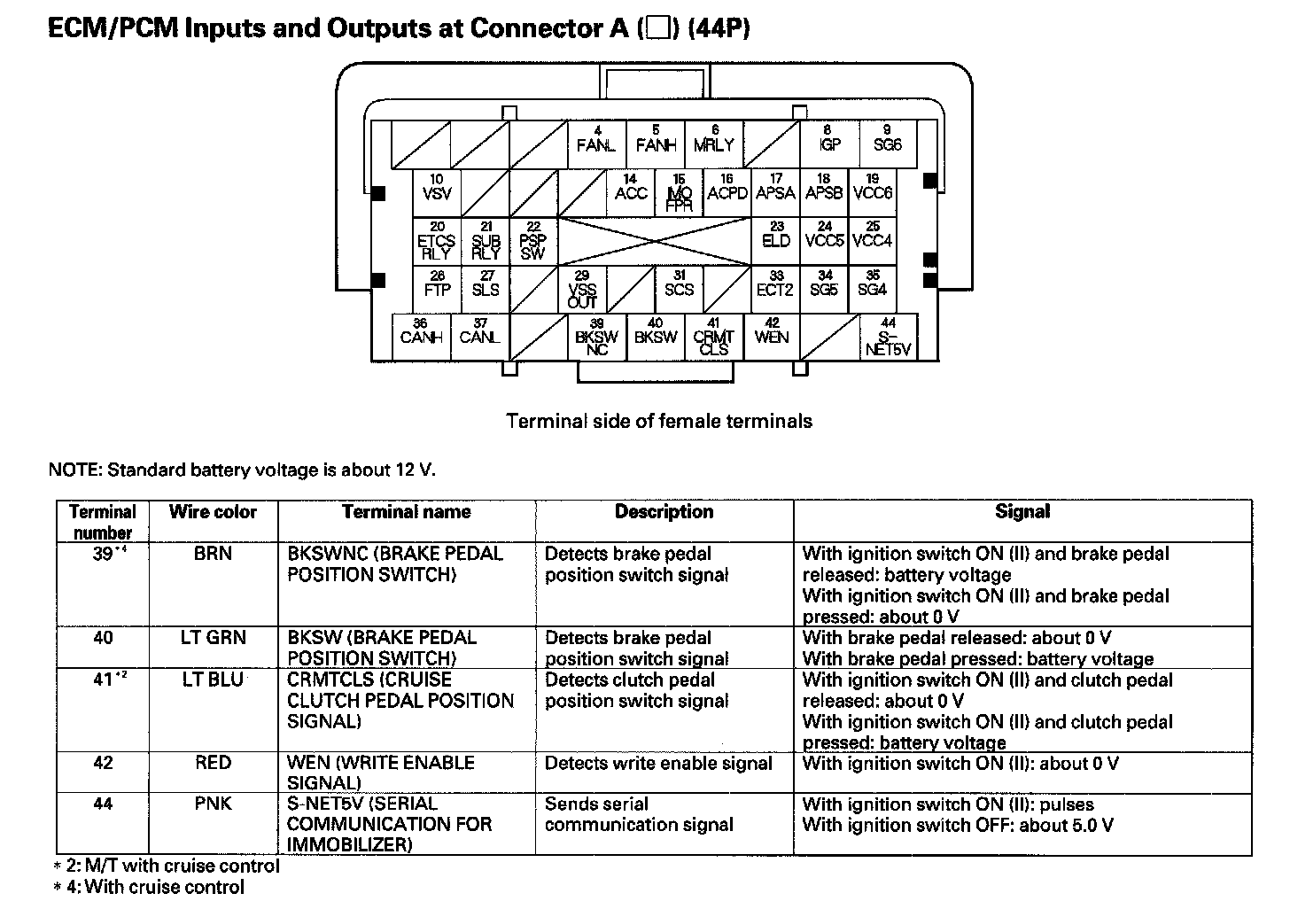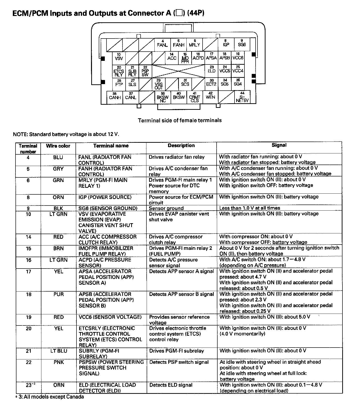 ECM/PCM Inputs And Outputs Connector A (44P) (Part 3):