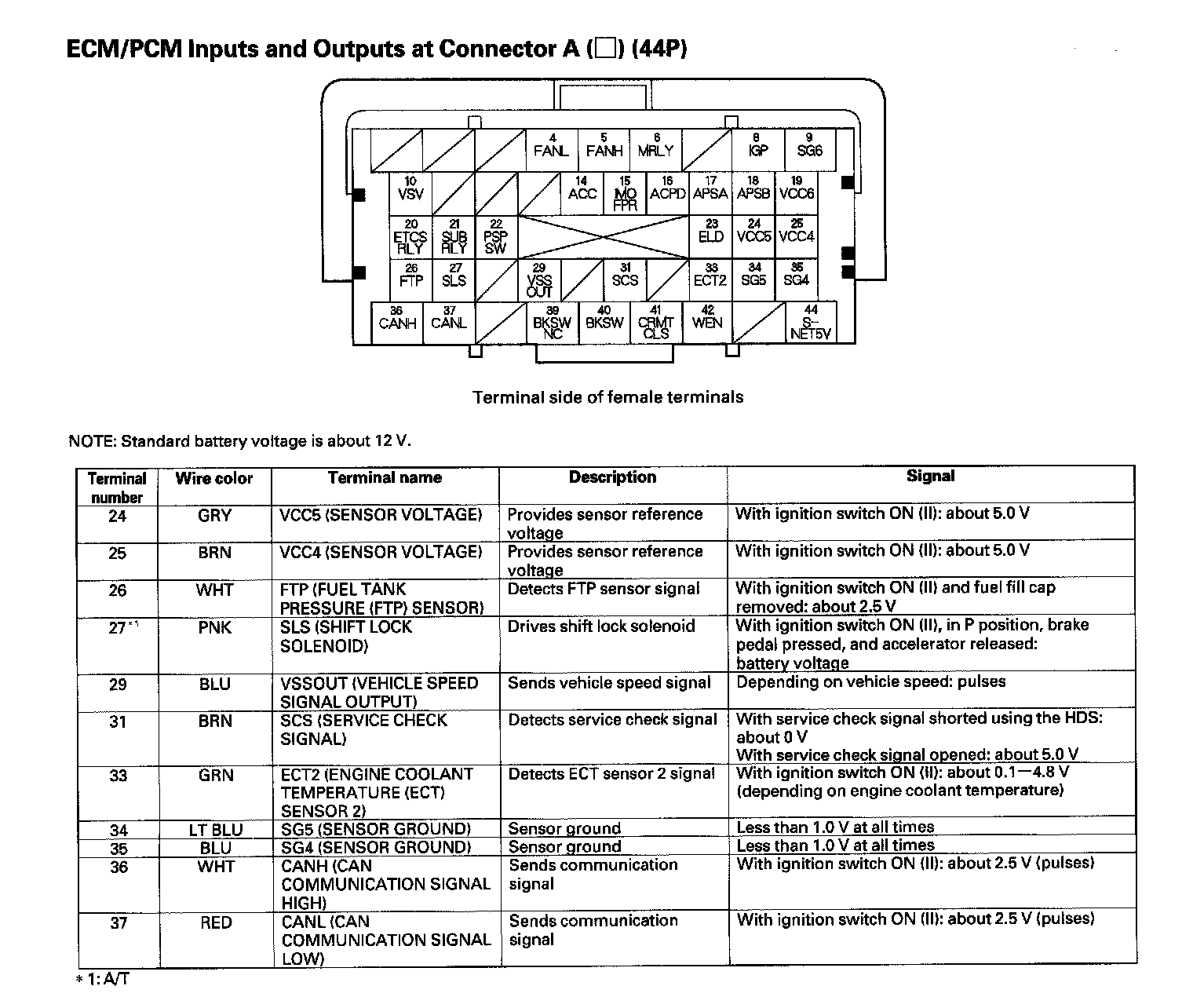 ECM/PCM Inputs And Outputs Connector A (44P) (Part 1):