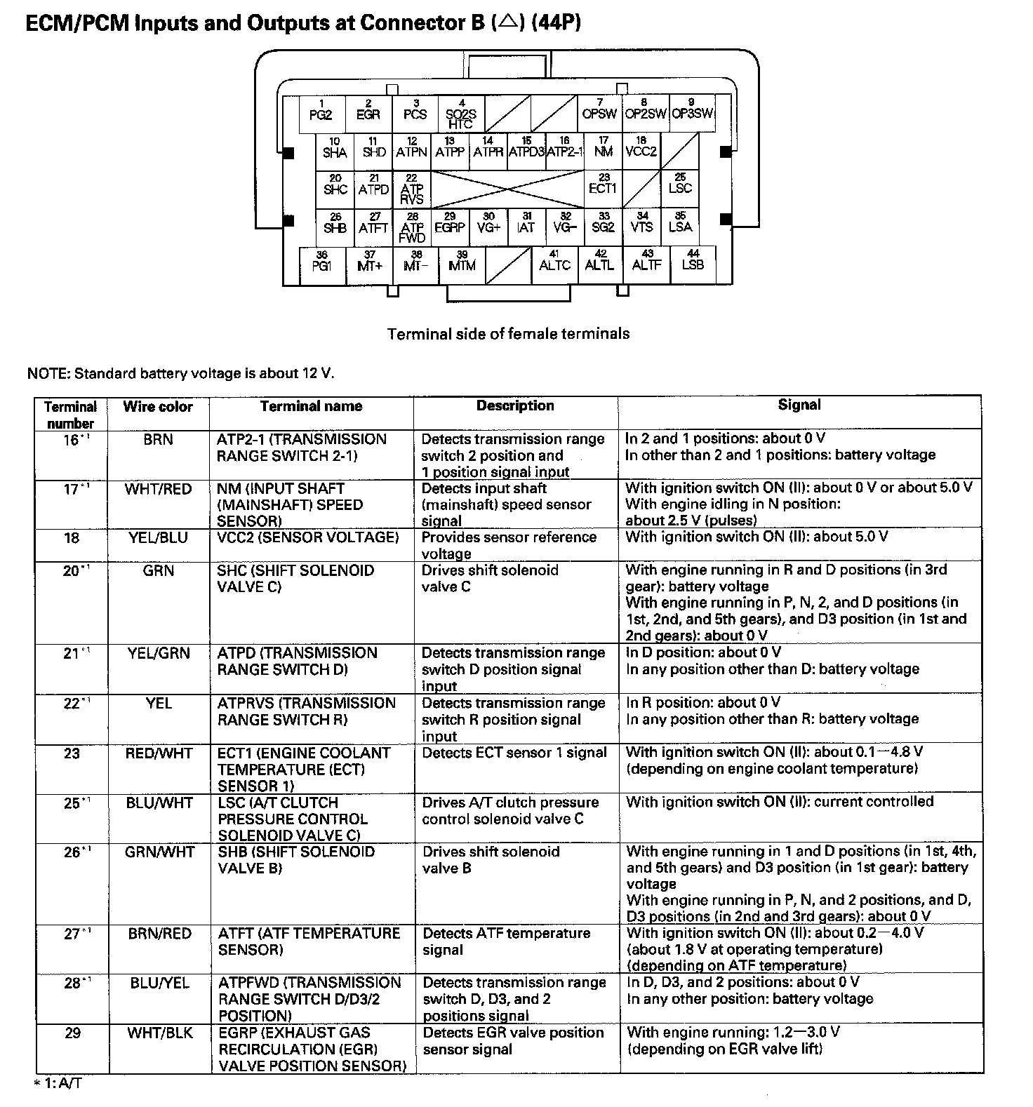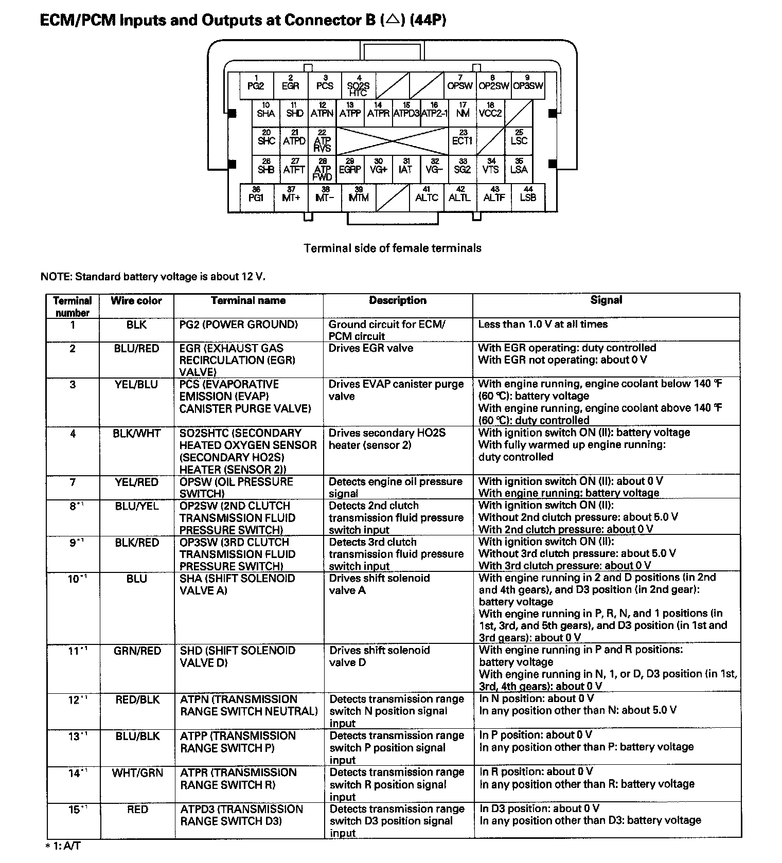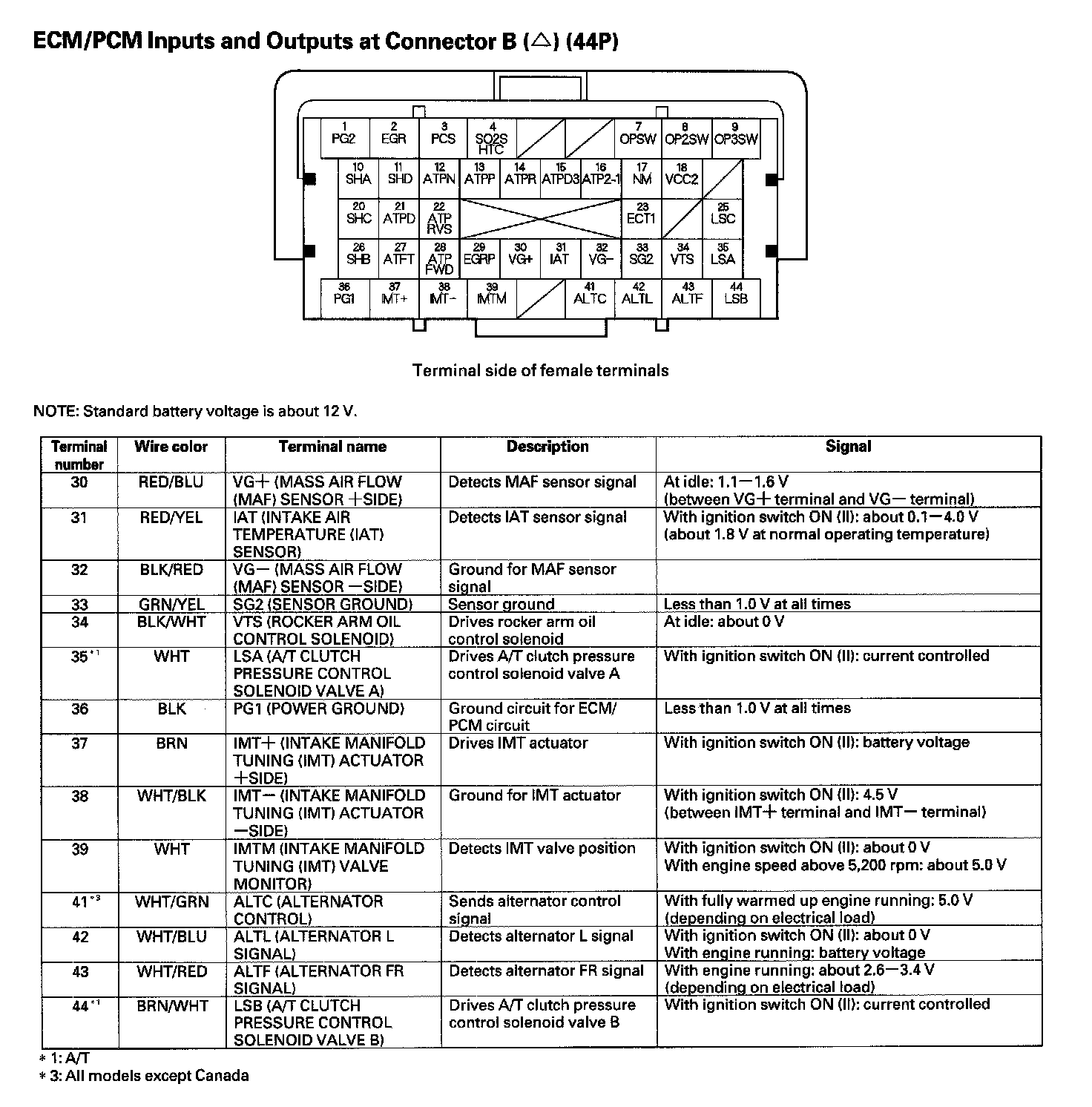 ECM/PCM Inputs And Outputs Connector B (44P) (Part 1):