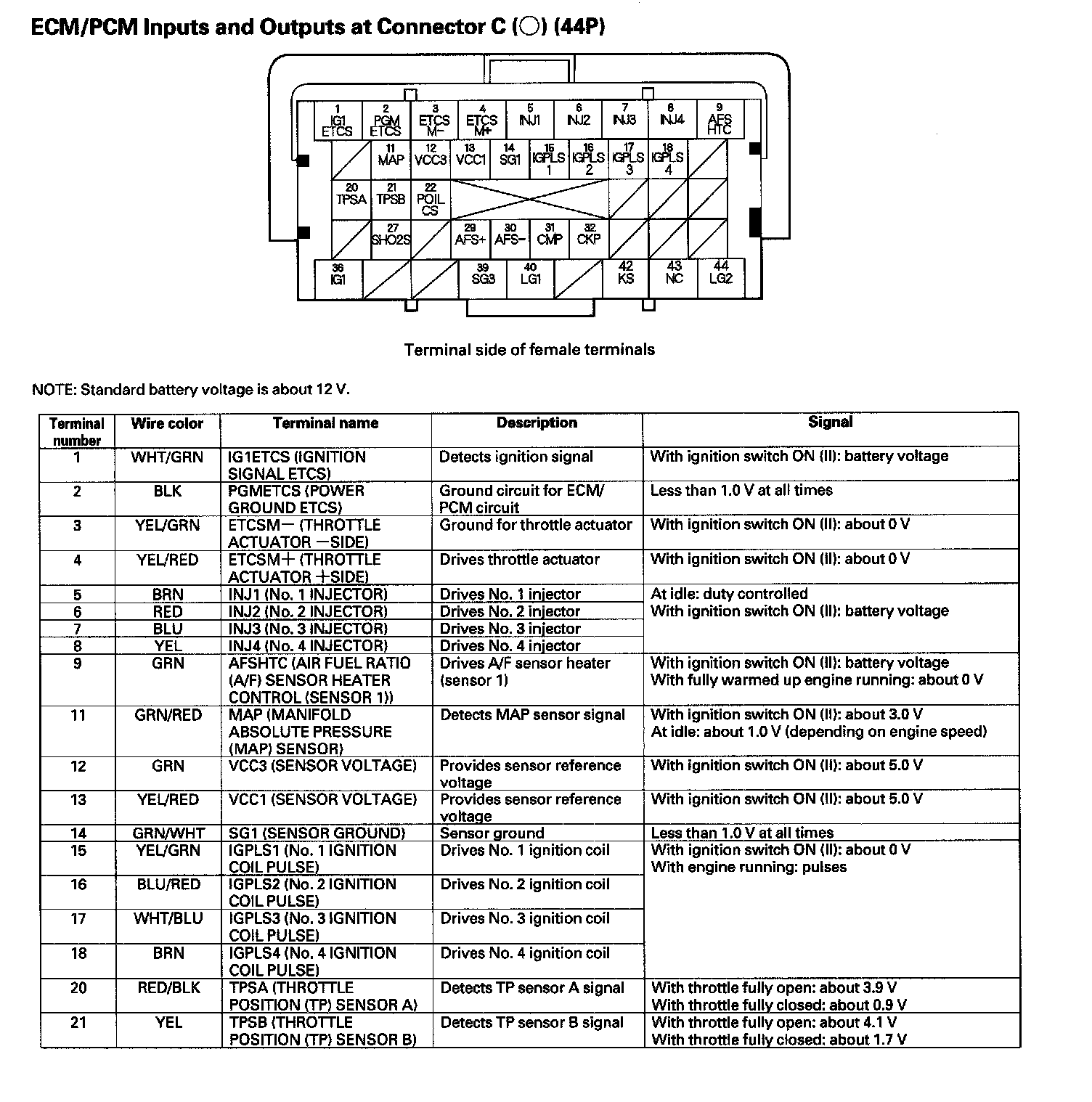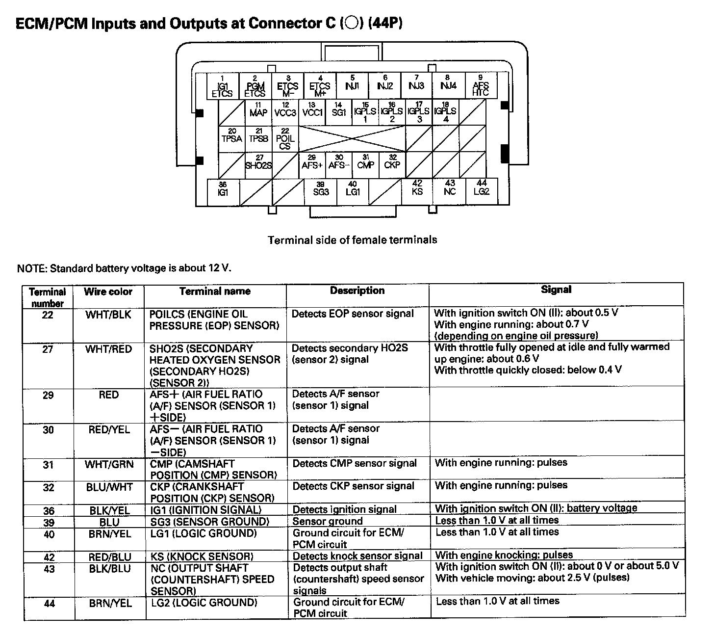 ECM/PCM Inputs And Outputs Connector C (44P) (Part 1):