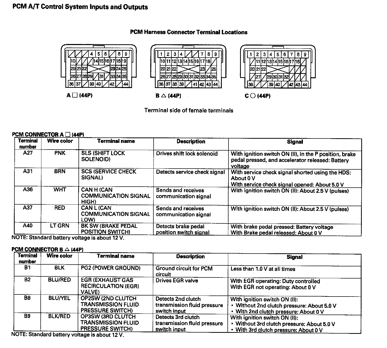 PCM A/T Control System Inputs and Outputs (Part 3):