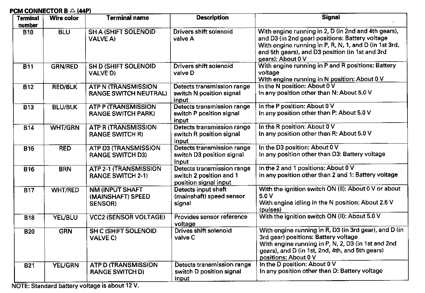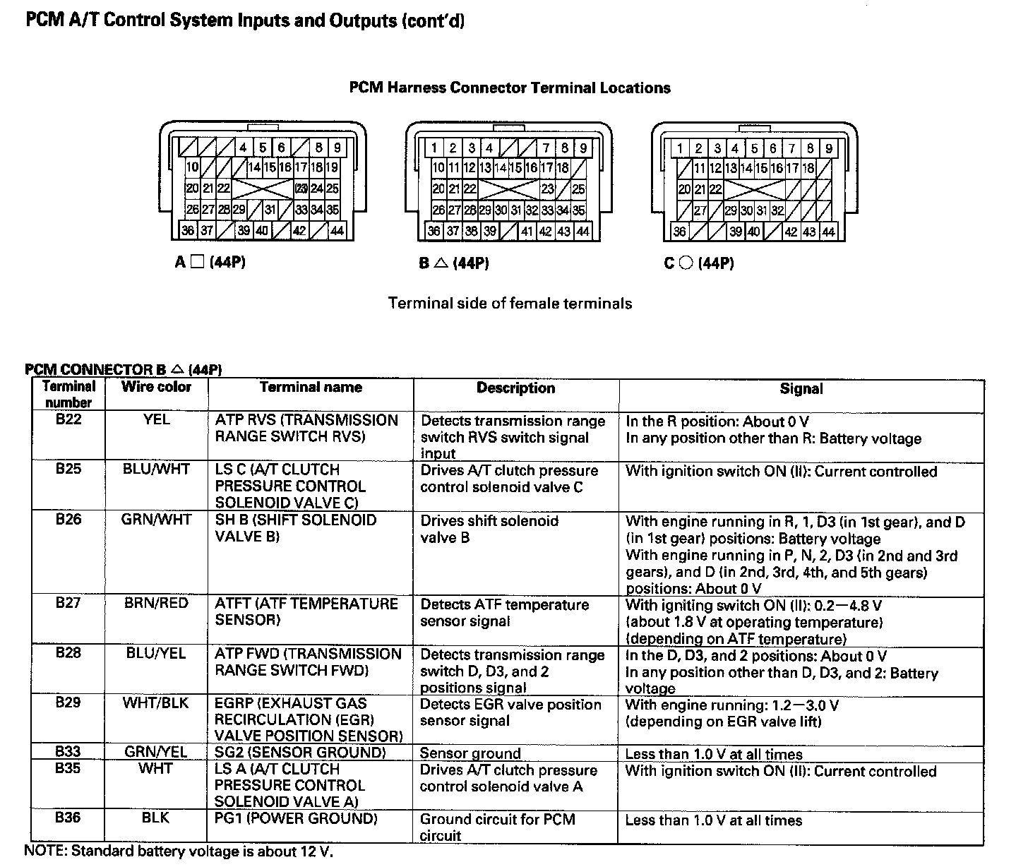 PCM A/T Control System Inputs and Outputs (Part 4):