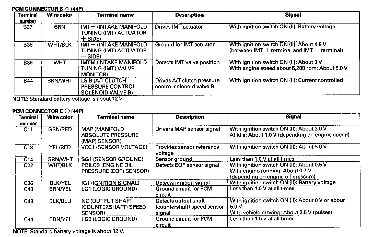 Pinout Values and Diagnostic Parameters