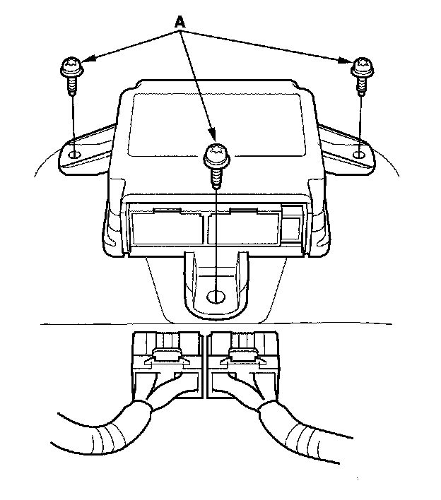 4. Disconnect the connectors and remove the TORX bolts (A), then pull out the SRS unit.