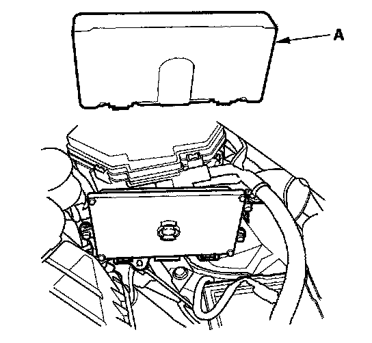 3. Lift up the under-hood fuse/relay box (D).