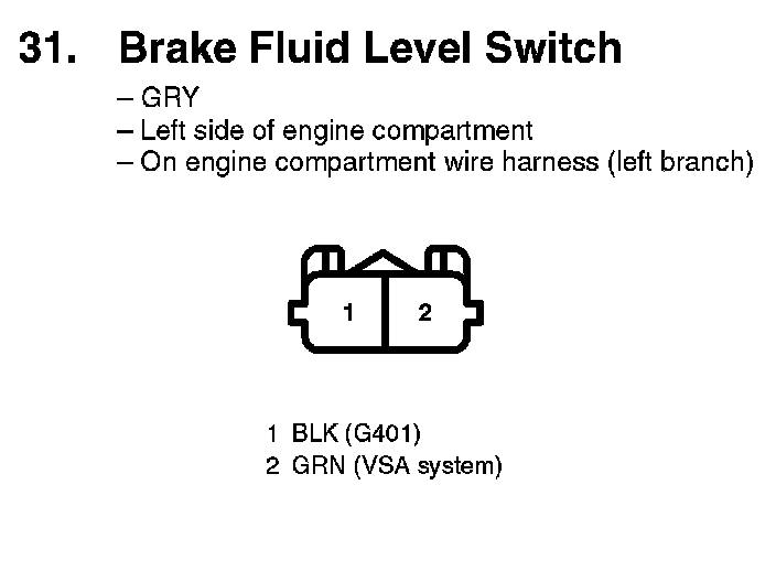 31. Brake Fluid Level Switch: