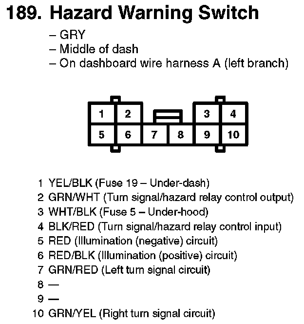 189. Hazard Warning Switch: