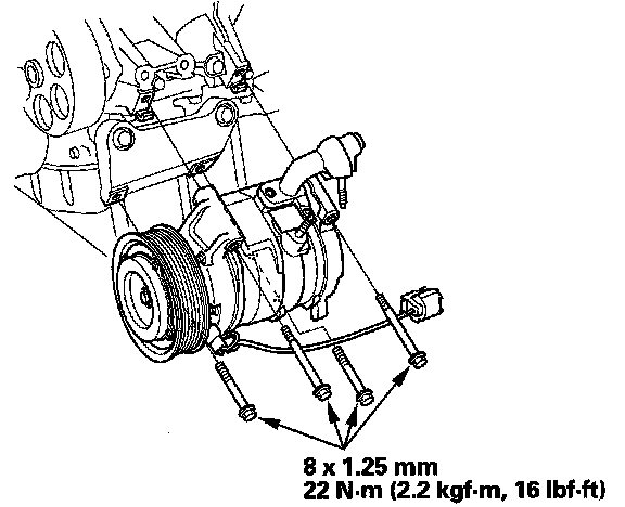 12. Install the A/C compressor in the reverse order of removal, and note these items: