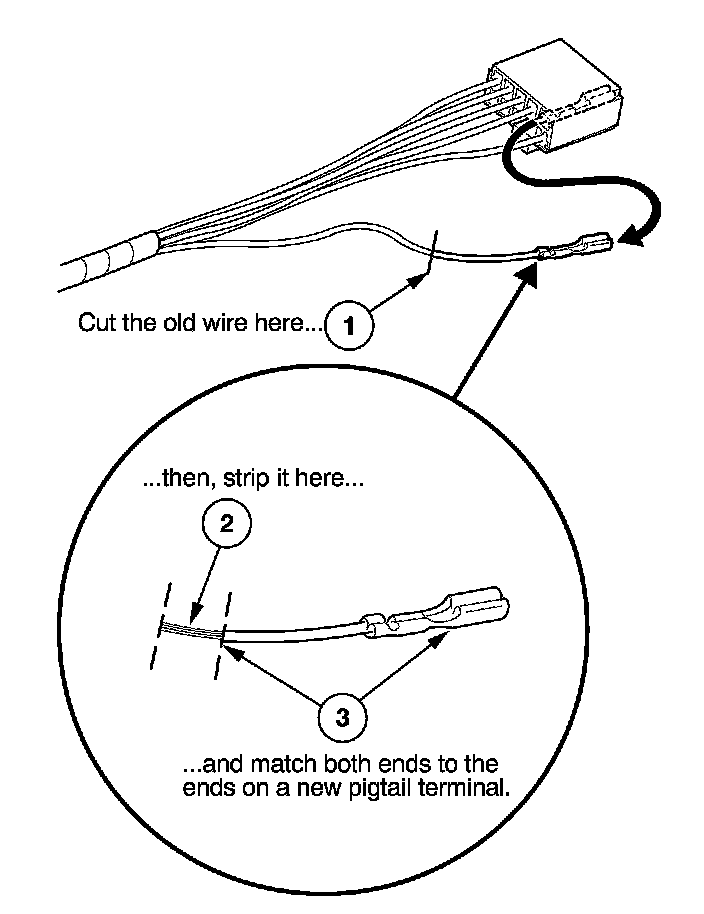 3. Select a pigtail terminal that matches the original wire at both ends (same kind of terminal and same diameter bare wire).