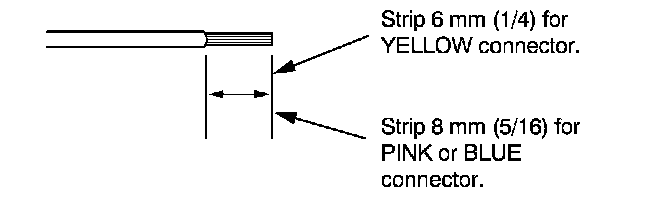 7. If you are using a yellow splice connector, strip about 6 mm (1/4 inch) of insulation off the ends of both wires. If you are using a pink or blue splice connector, strip off about 8 mm (5/16 inch) of insulation.