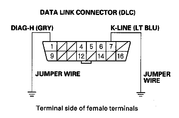 18. Connect DLC terminals No. 1 and No. 7 to body ground with a jumper wire.