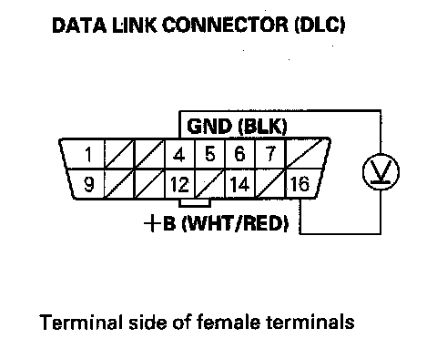 24. Measure voltage between DLC terminal No. 16 and body ground.