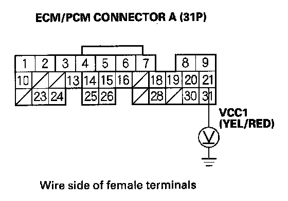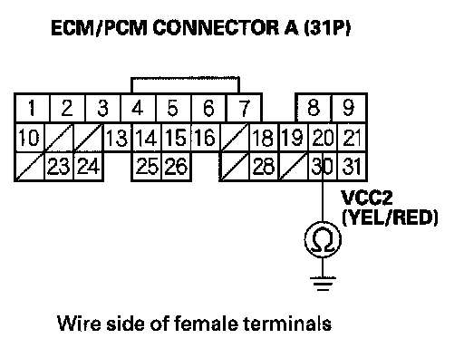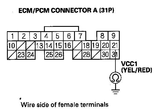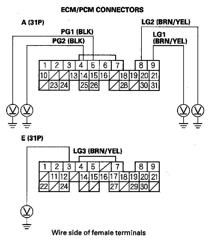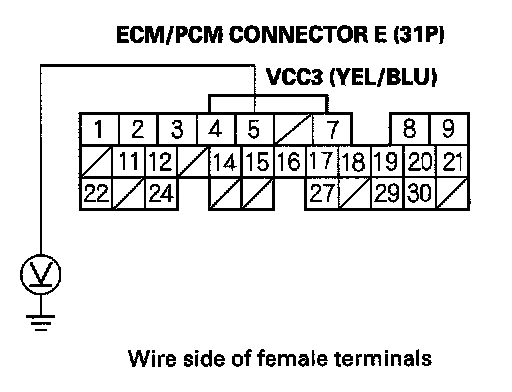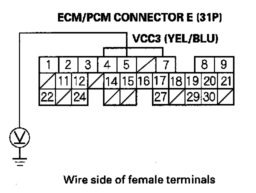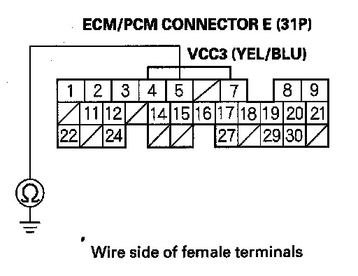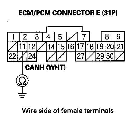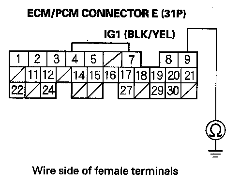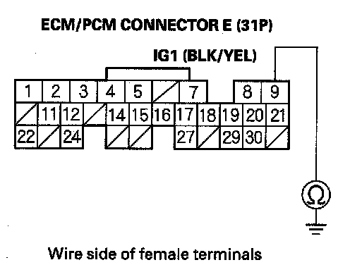 31. Check for continuity between ECM/PCM connector terminal E11 and body ground.
