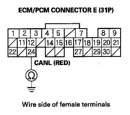 34. Check for continuity between ECM/PCM connector terminal E24 and body ground.