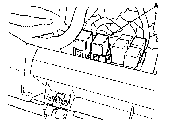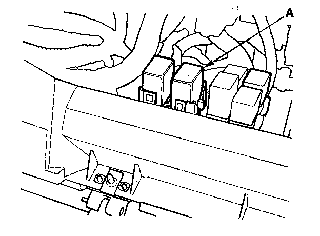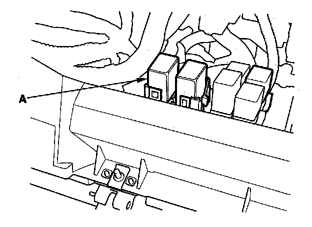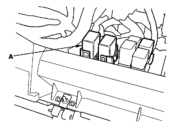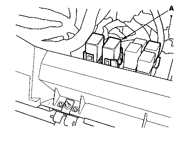 50. Remove the glove box, then remove PGM-FI main relay 2 (FUEL PUMP) (A).