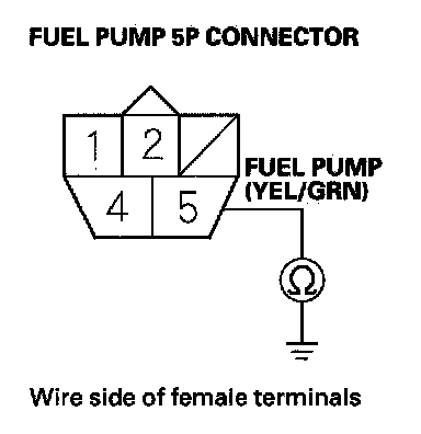 55. Check for continuity between fuel pump 4P connector terminal No. 5 and body ground.