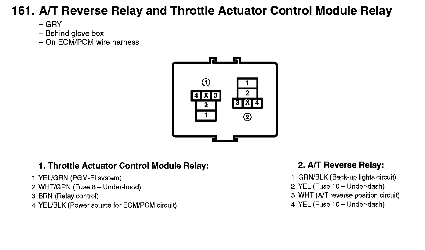161. A/T Reverse Relay And Throttle Actuator Control Module Relay: